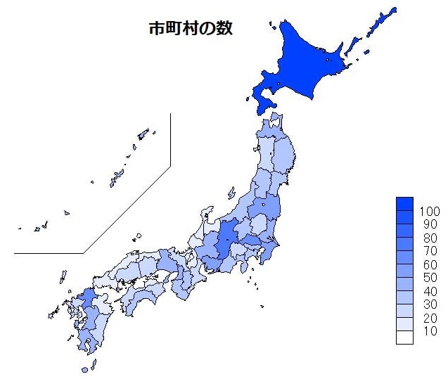 2020年現在、市町村の数が最も多いのは北海道で185(うち北方領土に6村)。2位の長野県の77を大きく引き離してダントツです。3位は埼玉で63でした。