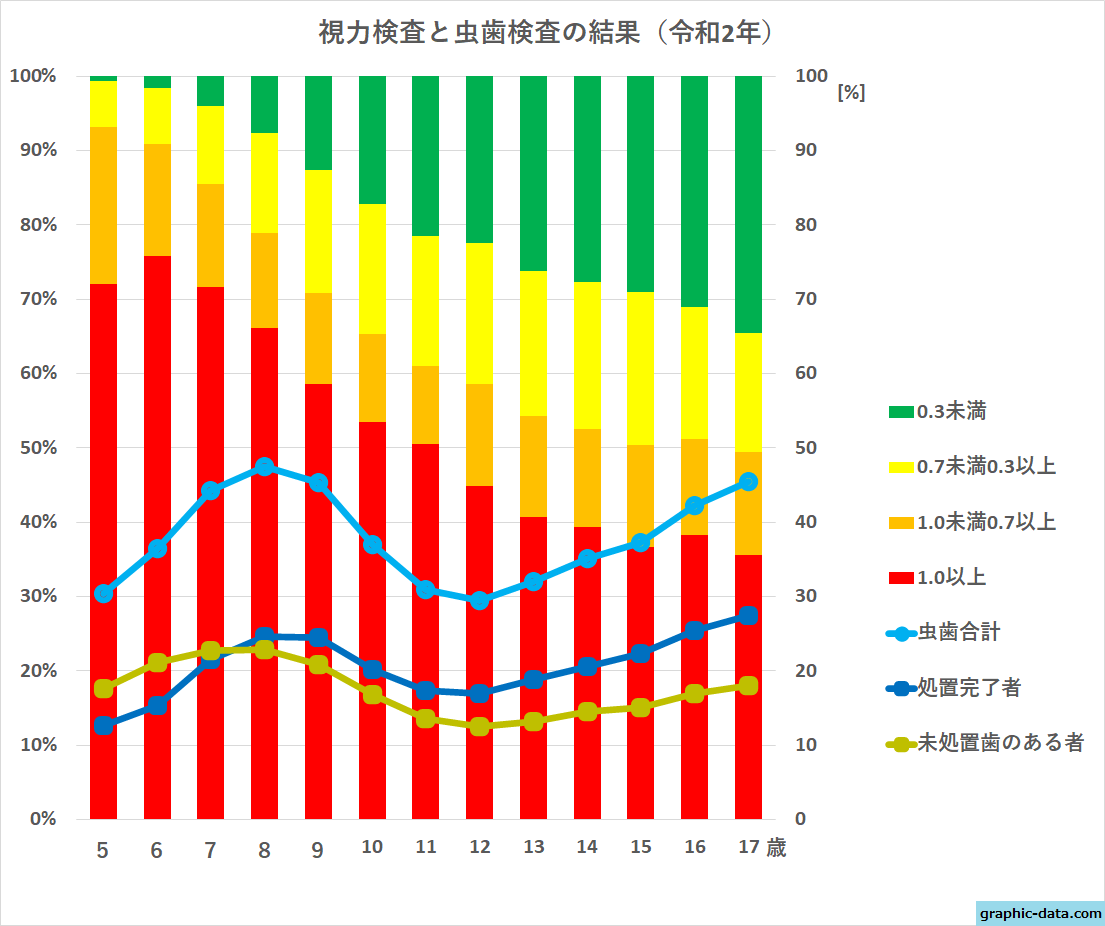 - 年齢別日本人の虫歯と視力