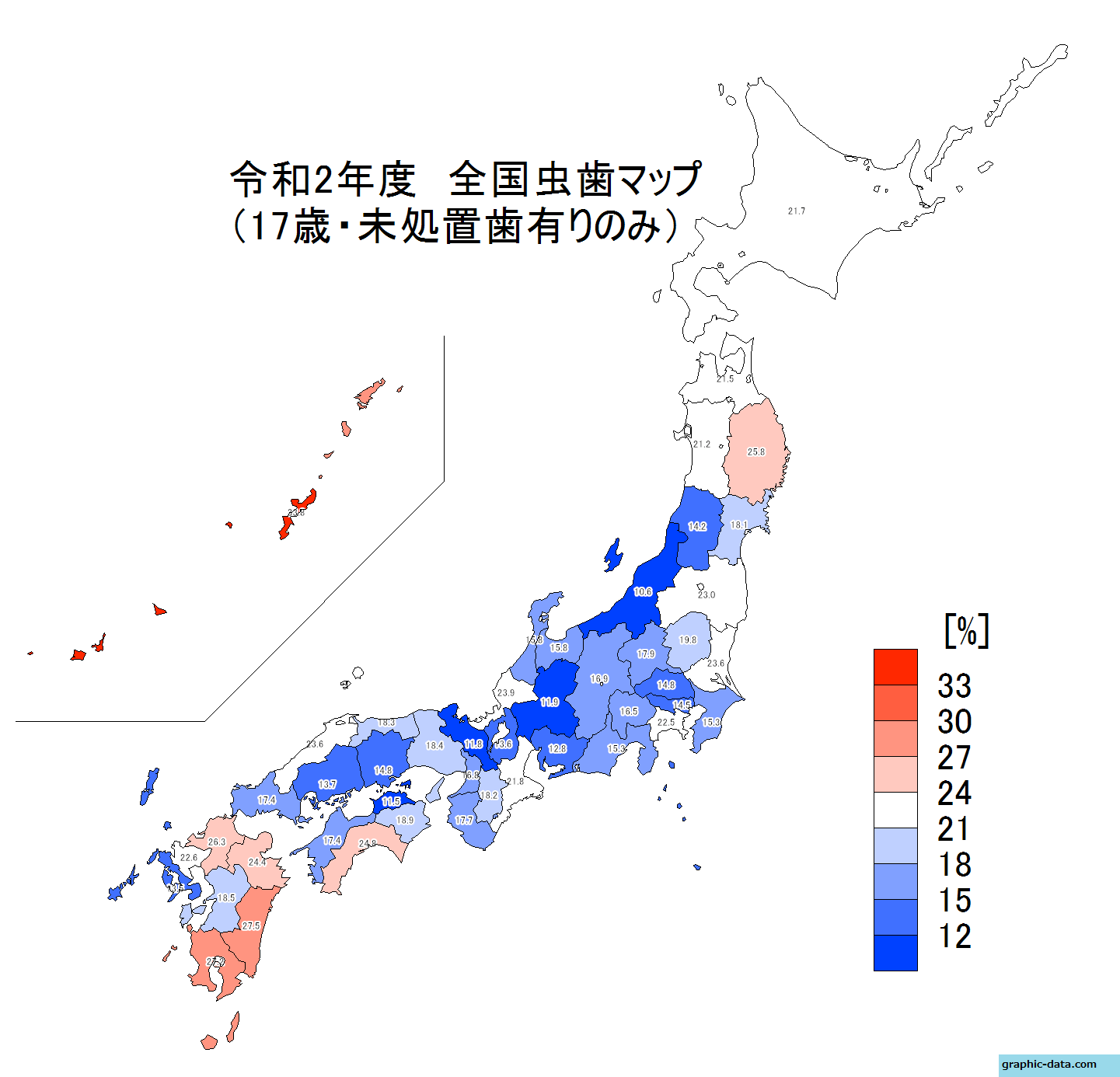 - 都道府県別虫歯マップ